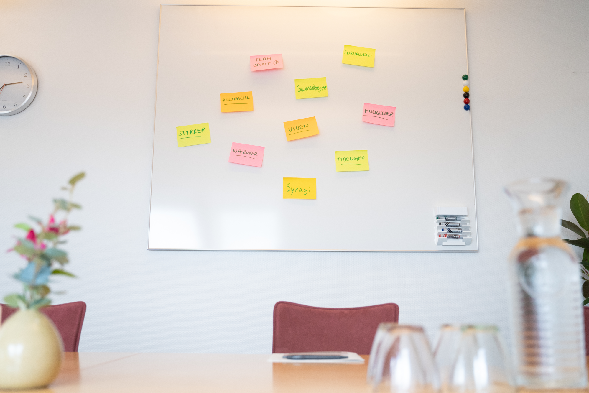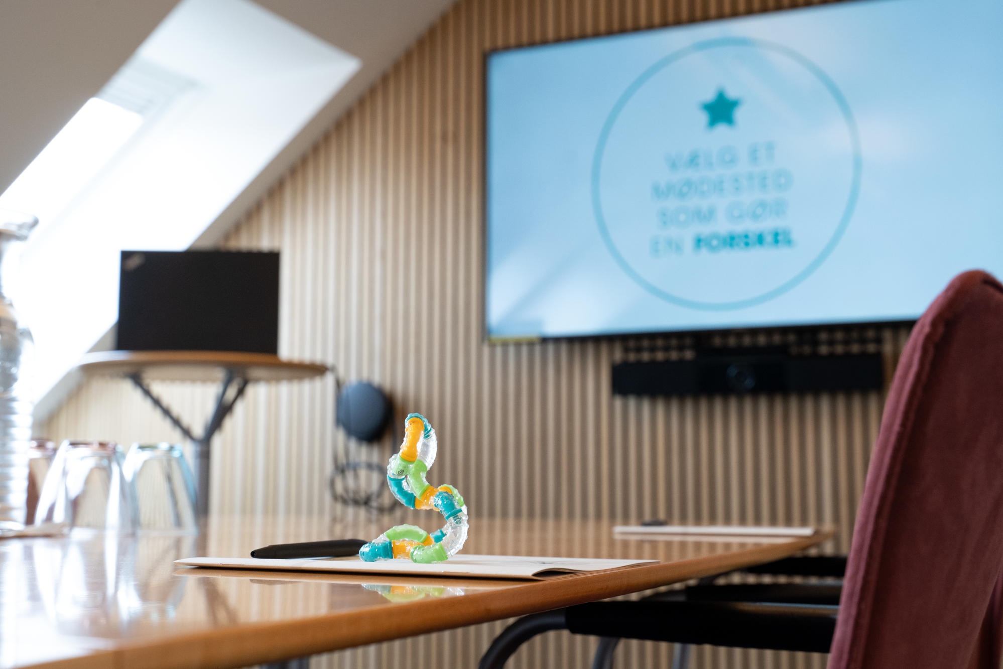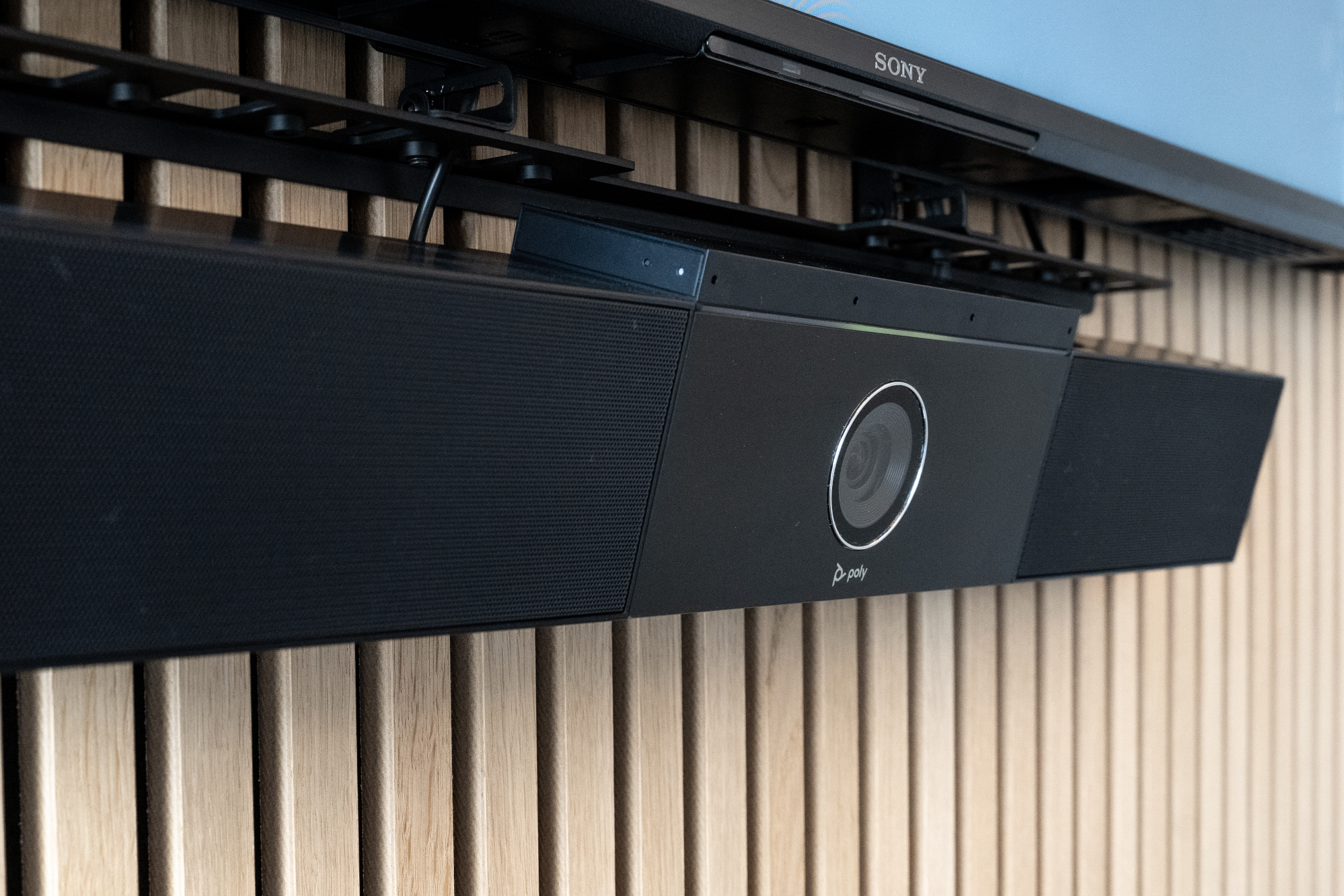 Storskærm, PC, lyd, hybridmødeudstyr.