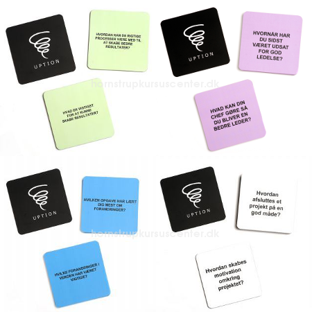 Brug dialogkortene fra UPTION til at stille de gode spørgsmål. Kortene er opdelt i sæt/temaer - "Teams og samarbejde", "Forandring", "Kreativitet" m.m.